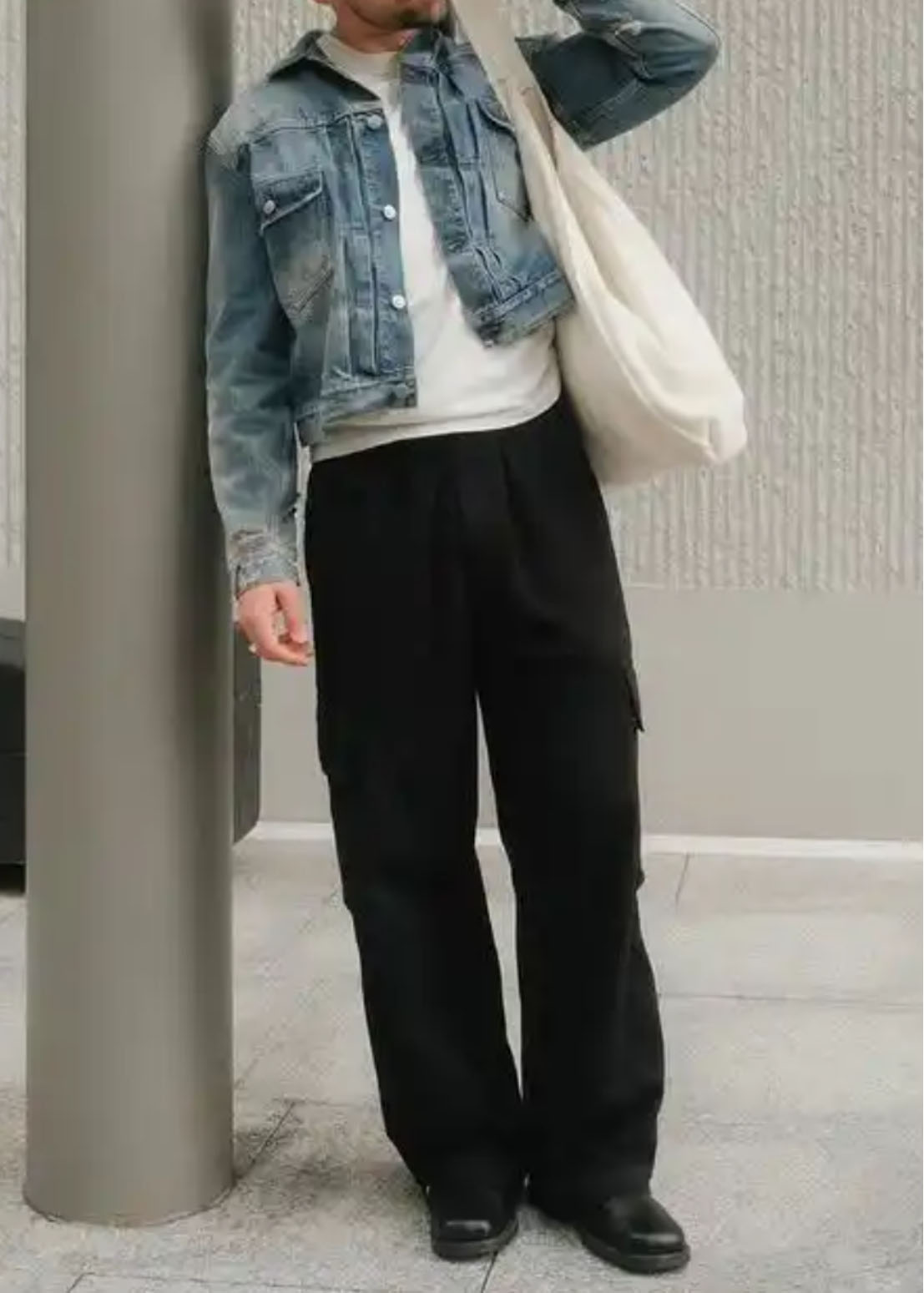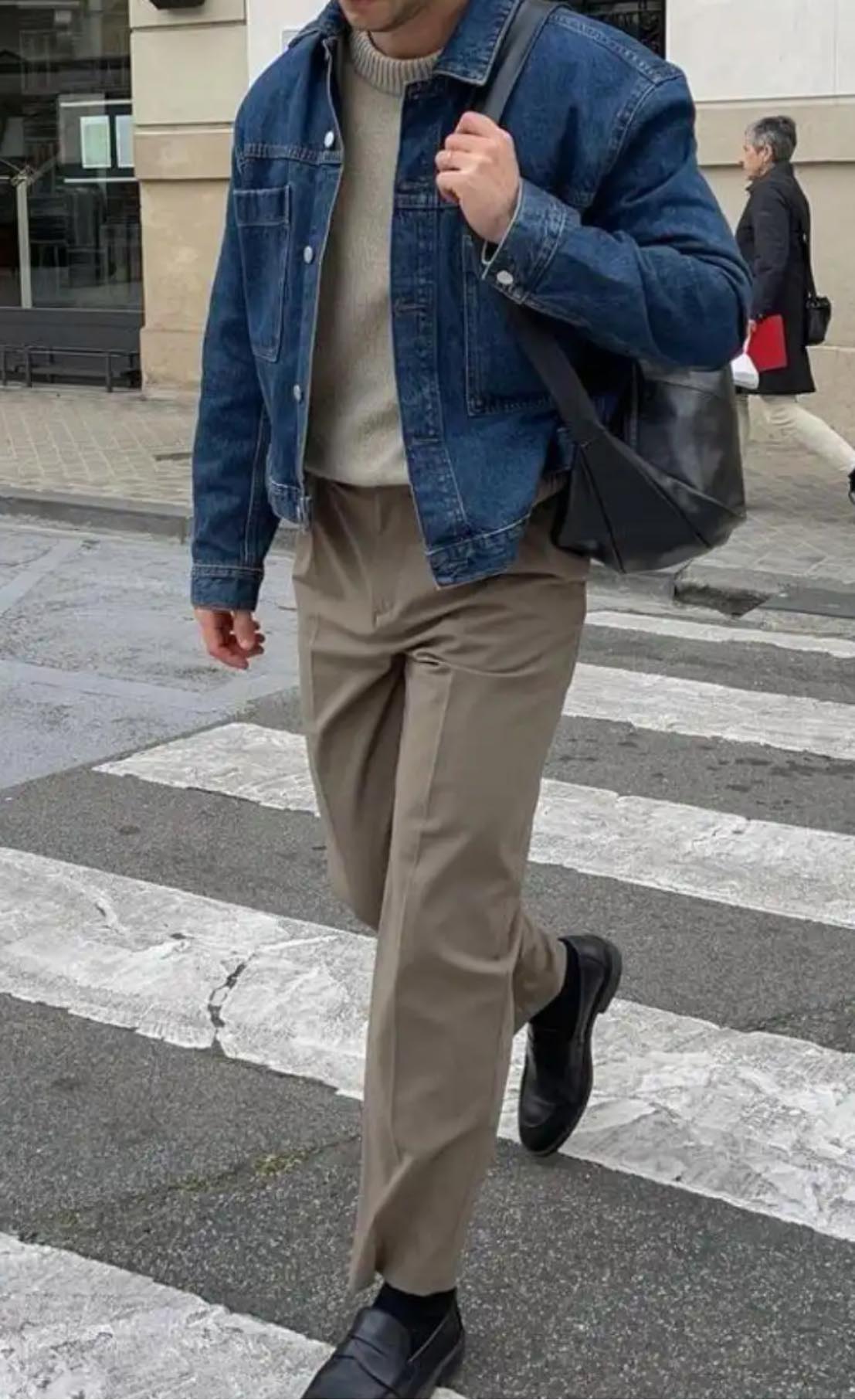 The denim jacket is not just a garment for warmth, but also a cultural symbol. Known for its durable and versatile fabric, it carries the spirit of freedom and individuality. After special washing techniques, it develops rich color layers and a versatile silhouette, full of creativity. Whether worn by men or women, it exudes an effortlessly cool and rebellious vibe. As a staple piece, it can be paired with a simple T-shirt and pants during spring and autumn, creating street-style photos with just a casual snap. A timeless denim jacket meets diverse style needs. When combined with cargo pants, it creates a fashionable and rugged look that suits everyone and remains visually appealing. Paired with casual suit pants, it offers an elegant option for the workplace, presenting a low-key yet sophisticated and layered outfit. Matching a denim jacket with wide-leg pants enhances a literary and trendy feel, making the overall look bold and stylish.
